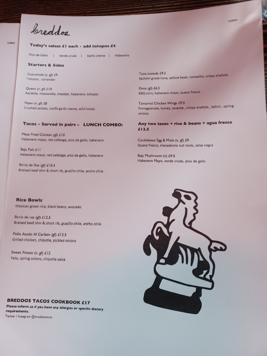 Welcome to Breddos Tacos Clerkenwell, a hidden gem nestled at 82 Goswell Rd., London. This vibrant eatery specializes in authentic Mexican flavors, showcasing a menu brimming with creativity and fresh ingredients. Start your culinary journey with enticing Starters & Sides like the creamy Guacamole Totopos and the irresistible Tuna Tostada, loaded with sashimi-grade tuna and crispy shallots.